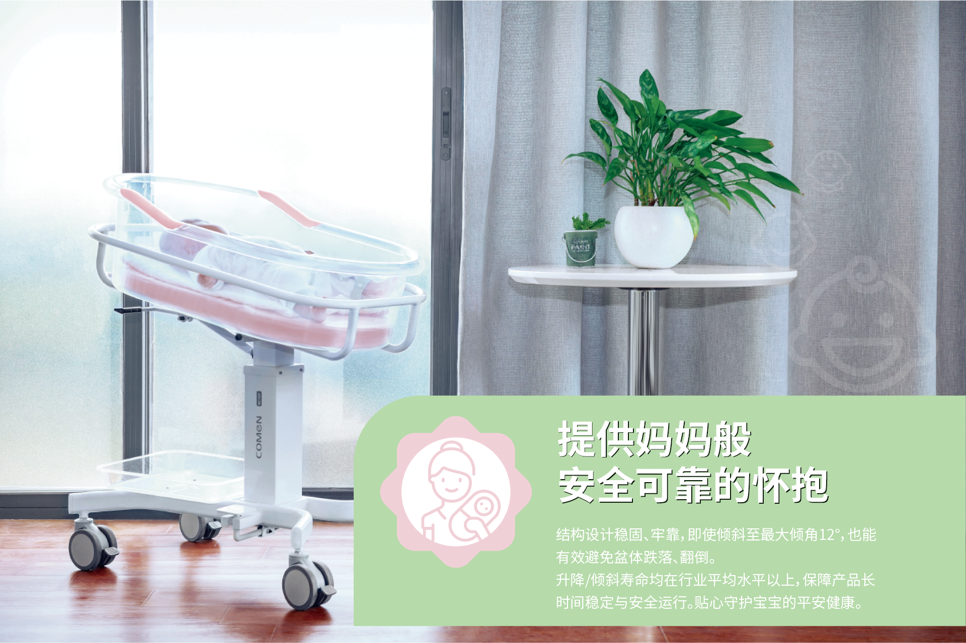 整車采用醫(yī)用級剎車腳輪,輕巧去噪,讓寶寶睡得更香更甜