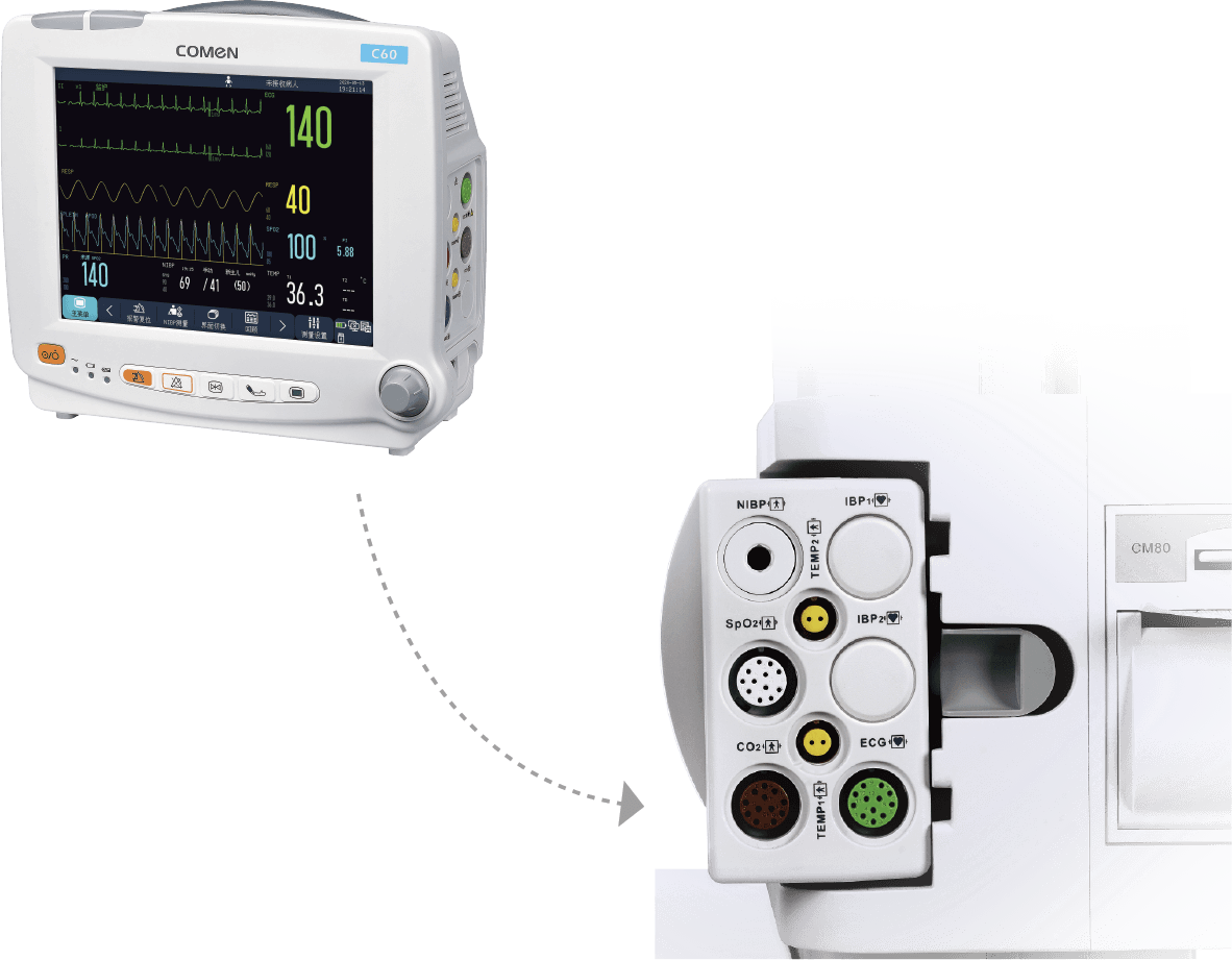 BQ80內(nèi)置集成了新生兒專用監(jiān)護系統(tǒng),無需額外設備支持,便可實時監(jiān)測并觀察復蘇時新生兒各項生命體征參數(shù)及波形,方便醫(yī)護人員評估和判斷復蘇措施有無反應。