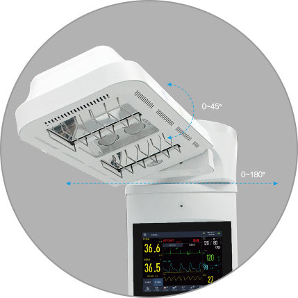 - 支持水平、垂直方位旋轉(zhuǎn),拍X光片時輻射罩移開亦能對新生兒持續(xù)加熱,不用擔心受涼或者受冷應激張