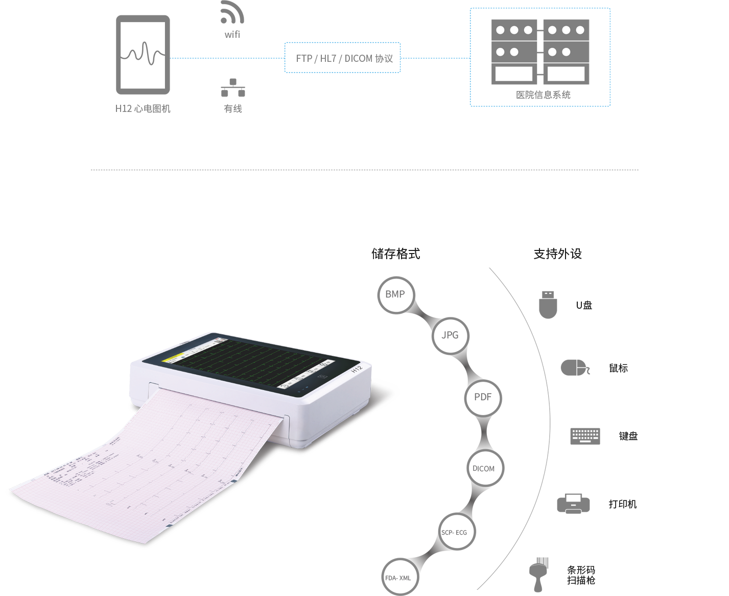 - 支持BMP / JPG / PDF / DICOM / SCP- ECG / FDA-XML格式的報(bào)告輸出,滿足醫(yī)院信息化需求